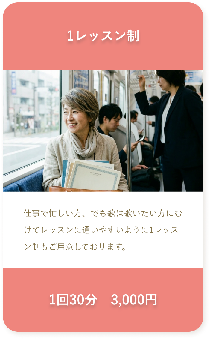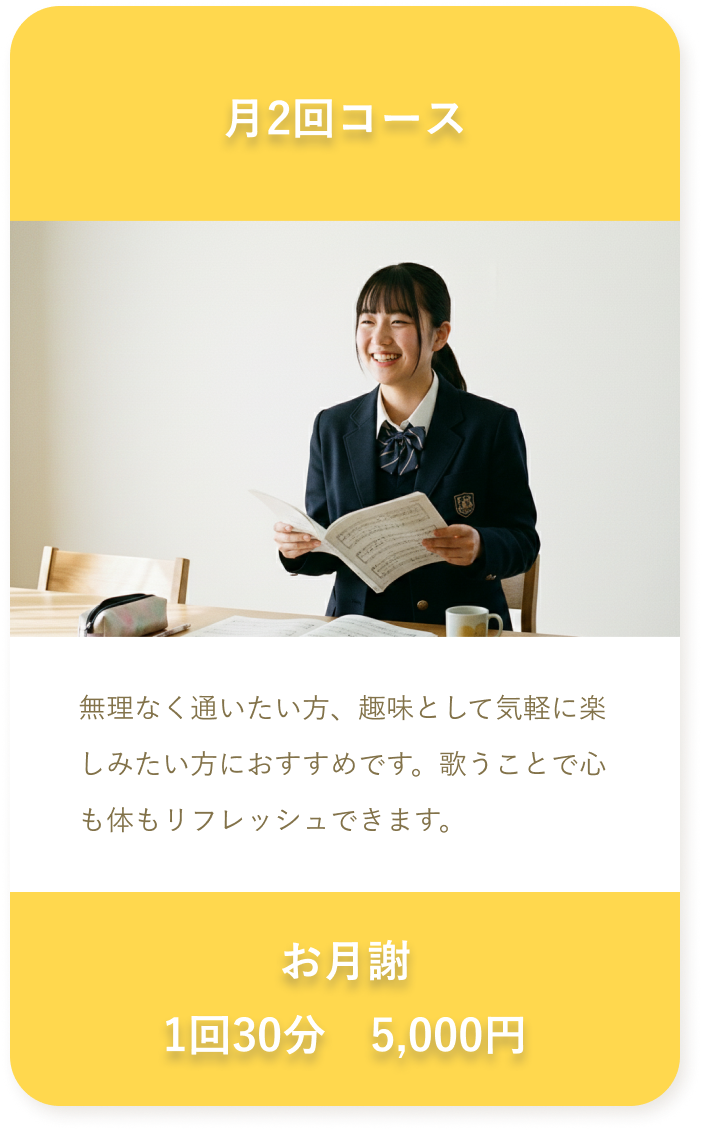 「音が合わない」「声が出にくい」といった悩みにも寄り添いながら、無理なく伸びやかに歌えるようサポートします。
